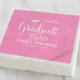 This design features a graduation grad graduate napkin design, with a modern class of your year, a simple grad party celebration, for high school or college celebration, with pink elegant senior style, with mortarboard tassel cap, a calligraphy font typography script, great for congratulations celebration, with minimal minimalist, classy whimsical vintage design