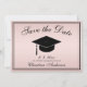 Invite your family and friends to your high school or college graduation celebration with this elegant save the date invitation flat card. This design template features a trendy black script typography design accented by a black grad cap on a faux light rose gold background. Personalise your name and date on the front and on the back customise with more details of your party. Congrats on your graduation! Designed by artist ©Susan Coffey.