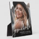 This simple and minimalist graduation easel table top sign or plaque features a full-page photo with a sleek and modern layout. “Graduate” is displayed in elegant handwritten script, with the graduate’s name, “Class of 2026,” and the school name below in classic fonts for a clean and polished look.