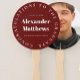 Congratulate and celebrate your male grad and stay cool at the same time. Plus use this personalised grad fan to save your graduation ceremony seat! The front design has the grad's name in a bold modern font, class of year, school name and the saying "congratulations to the graduate" in modern typography set against a background of your colour choice (shown in burgundy but can be changed to your school colour using the customise it menu). You can also change the colour of the text to match the school colours. The back of the fan features your grad's photo. Modern elegant graduation ceremony fan that is also a fantastic keepsake of your grad's big day.