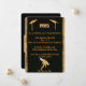 Black and Gold Graduation announcement with gold side trim, caps, and diploma. Personalise all captions.