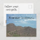 This landscape postcard offers you an inexpensive way to offer encouragement to a recent graduate. A huge mountain soars out from the Arizona desert floor in this photo. The hiking path is well worn and can clearly be seen making its way up the mountain. "Remember to always follow your own path" can quickly and easily be changed to suit your needs.