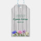 Garden party graduation with pink and white roses as well as blue and purple wildflowers.