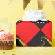 Personalised graduation gift wrap featuring classic black cap design on red background. To customise for your favourite grad edit text to add his or her name.