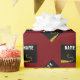 Creative graduation gift wrap and grad party decoration featuring artistic black and gold graduation caps on maroon background. Edit text to add grad's name and the senior class year.