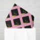 Creative graduation gift and grad party decoration tissue featuring black and gold graduation cap pattern on pink background.
