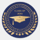Graduation Gold Blue Grad Cap Classic Class of Classic Round Sticker