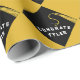 Creative graduation giftwrap and grad party decoration featuring black cap with a gold tassel. Edit text to add name of your favourite high school or college graduate.