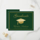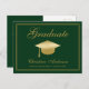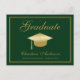 Graduation Gold Grad Cap & Script on Green Party Invitation Postcard