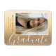 Graduation Gold Stylish Script Modern Photo Graduation Magnets features a gold shimmer background with your custom photo. Personalise by adding your name, school, college or university and class year by editing the text in the text boxes provided. Designed for you by ©Evco Studio www.zazzle.com/store/evcostudio