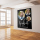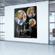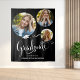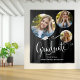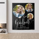 This design features a graduation graduate black and white backdrop sign, congratulation congrats grad template, great for class of 2021 2022 2024, high school or college, a college university photo sign, senior photo picture photography, an elegant calligraphy script typography, a stylish grad party decor, graduation party sign, graduation backdrop decoration