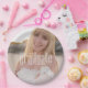 This design features graduation graduate grad party, a modern photo 1 one picture design, with an elegant trendy supply supplies, a simple class of your year. script typography, classic simple celebrate celebration, minimal minimalist senior, stylish and chic high school, white text overlay college, personalised paper plate template, block font