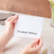 The graduate's name is in large, bold black text. Smaller text for the year the student is graduating is under the name. All the text can be edited or deleted.