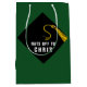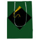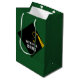 Graduation gift bag featuring creative cap design on green background Edit text to add senior class grad's name.