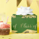 Graduation wrapping paper featuring a repeating pattern of CLASS OF YEAR (editable year) in gold with a faux metallic gold foil graduation cap or mortarboard against your choice of color background (shown in an editable green). Use for wrapping graduation gifts or as display backdrops or table coverings at the graduation party. ASSISTANCE: For help with design modification or personalization, color change, resizing, transferring the design to another product or if you would like coordinating items, contact the designer BEFORE ORDERING via the Zazzle Chat MESSAGE tab below or email makeitaboutyoustore@gmail.com.