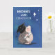 A cute hedgehog is wearing a graduation cap and holding a diploma. It is looking up at the stars in a watercolor night sky. Personalise this card for the graduate with the name and year for a great unique card. Perfect for guy or girl and any level graduation!