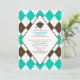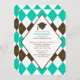 Graduation Invitation Prep Brown Turquoise Argyle