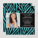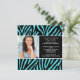 Start off you event right with our beautiful turquoise blue and black Zebra stripe print photo graduation invitation. Perfect graduation invitation for a high school graduation or college graduation. Just fill in your information add your photo and you're all set to go. Visit our shop at www.celebrateitgraduations.com for a large assortment of graduation invitations!