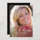 Send an elegant thank you card to your family and friends for their graduation gifts to you. This design features your photo on the front with a modern script which reads. "Love & Thanks" in black typography with your name and class/year below. The back of the card is black with a message you may personalise or delete. Designed by artist ©Susan Coffey. Photography © Storytree Studios, Stanford, CA.