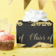 Graduation wrapping paper featuring a repeating pattern of CLASS OF YEAR (editable year) in gold with a faux metallic gold foil graduation cap or mortarboard against your choice of colour background (shown in an editable black). Use for wrapping graduation gifts or as display backdrops or table coverings at the graduation party. ASSISTANCE: For help with design modification or personalisation, colour change, resizing, transferring the design to another product or if you would like coordinating items, contact the designer BEFORE ORDERING via the Zazzle Chat MESSAGE tab below or email makeitaboutyoustore@gmail.com.