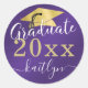 Graduation Metallic Shimmer Script Purple Gold Cla Classic Round Sticker