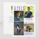 Modern, minimalist purple and white graduation announcement featuring a photo collage of 4 pictures of your high school or college graduate. The back side has an optional text field to include information about your graduate (delete the sample text in that field if not desired). ASSISTANCE: For help with design modification/personalisation, colour change, transferring the design to another product or if you would like coordinating items, contact the designer BEFORE ORDERING via the Zazzle Chat MESSAGE tab or email at makeitaboutyoustore@gmail.com.