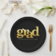 Graduation modern bold gold foil typography black paper plate