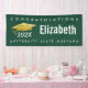 Announce to the world that your favourite grad has reached their milestone with this stunning, simple, modern, personalised banner. Bold, graphic, white typography and a faux gold foil cap icon overlay a hunter green background. Personalise the custom text with your graduate’s name, mascot or school name, and class year. Choose from indoor or outdoor options. Matching invites, thank you cards, cap toppers, fans, napkins, plates and other graduation goodies are also available in this trendy and stylish collection. Guaranteed to preserve cherished memories of their special occasion!