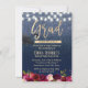 Graduation Modern Navy Blue Burgundy Red Floral Invitation