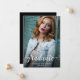 Elegant and chic minimalist style graduation announcement card featuring hand lettering & calligraphy style display text