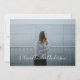 Graduation modern photo script typography elegant announcement card. Navy blue backer.