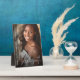 Graduation photo plaque with with your name in a modern script font and the school name and year aligned to the left over a dark, vertical overlay.