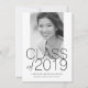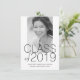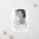 Simple but classic minimalist stacked text graduation announcement/invitation with 1 unframed photo placement. Completely versatile do-it-yourself layout. Easily adjust the size and placement of the photo, or change the font style, colour and placement of all custom text fields in advanced Customise mode. Pick the background colour of your choice, add more photos, and don't forget to change the sample announcement / party invitation text on the back. Best for light photos, other options available for darker photos.