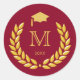 Graduation Monogram Gold Laurel on Maroon Classic Round Sticker