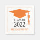 Graduation Paper Napkins in a black design of Mortarboard / Graduation Cap. Colours are in Orange and Black. If you want me to change the design or colours please email me at paula@labellarue.com BEFORE placing an order so a new design can be created for you. Customise three lines of text.