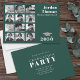 This design features graduate graduation grad photos with dark green school colours, a multi-photo picture collage grid, a modern simple minimalist minimal, for high school or college seniors, a basic minimal typography font text, a modern mortarboard mortar board cap,12 twelve photo layout template, a graduation grad party invitations, a grad party photo announcements, with school name class of year