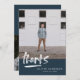 Modern graduation navy blue script 3 photo stylish thank you announcement invitation.