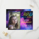 Trendy neon glow in the dark purple vibrant colourful 8th grade middle school graduation party invitation postcard with your custom photo and bold typography. ++++++++++++ Easy to personalise with your details and photo on both sides!
