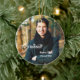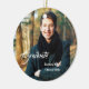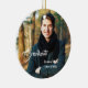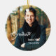 Graduation ceramic round ornament is shown with a sample photo of a graduate with name and date.