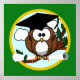 Graduation Owl With Cap & Diploma - Green and Gold Poster