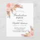 For a modern boho style graduation party. A stylish white background. Decorated with rose gold and pink florals, roses and pampas grass. Personalise and add a name and party details.