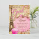 Graduation Paris Eiffel Tower Vintage Flower Pink Invitation
