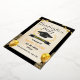 The design is based on solid black colours such as gold or white with high temperatures, with graphic lines, a picture of the graduate, and editorial details.