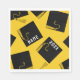 Creative grad party napkins featuring black and gold graduation caps on yellow background. To personalise edit text to add his or her name and senior class year.