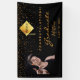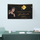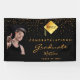 A banner for a 2025 (or any year) graduation party. A chic black background. Decorated with golden confetti and a modern, abstract faux gold cap, hat, tassel topper with the year inside. Add your own photo of the graduate. Text: Congratulations! The text: Graduate, and the name are written with a large modern hand lettered style script. For both him and her.