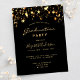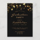 A glamorous invitation card for a 2026 graduation party for both him and her. A black background decorated with faux gold stars. Personalize and add a name and party details. The text Graduation and the name are written with modern hand lettered style script. Golden colored text.