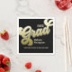 Elevate your graduation party with these stylish custom cocktail napkins featuring a sleek black and gold design. Perfect for any high school or college celebration, these napkins add a modern, minimalist touch to your grad party decor. Personalise with the graduate's name and Class of year for a unique detail that guests will love. A simple yet elegant way to honour the graduate and toast their big achievement in style.