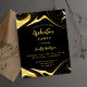 A modern style invitation for a graduation party for both him and her. A black background decorated with faux gold swirls. Personalise and add a name and party details. The text Graduation and the name are written with modern hand lettered style script. Golden coloured text.