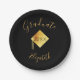 Graduation party black gold cap paper plate