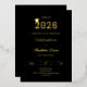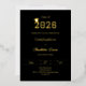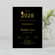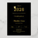 A modern and stylish black and gold invitation for a graduation party. Decorated with a black graduation cap. Personalize and add a name, and the details.